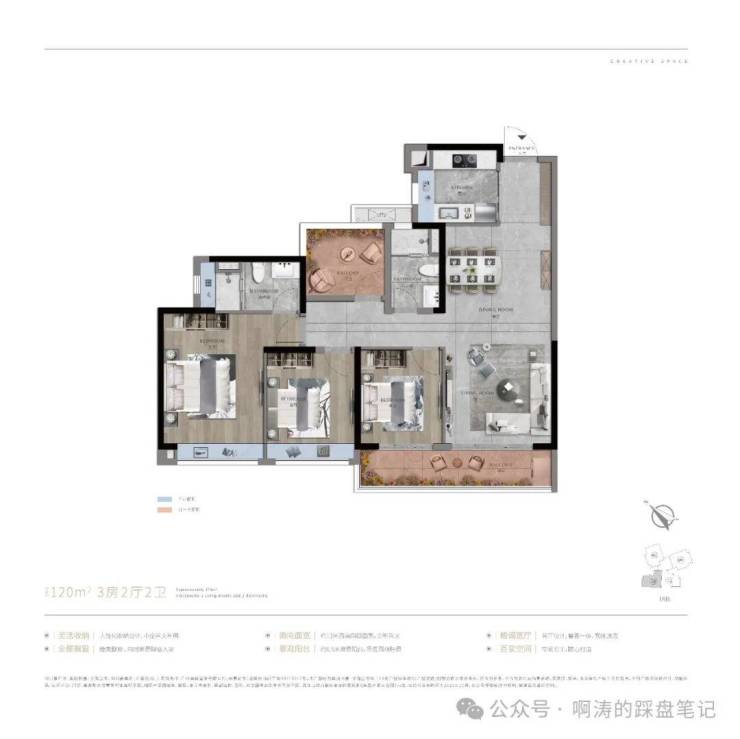 科学布局|方正户型空间更实用,动静分离起居生活更舒适