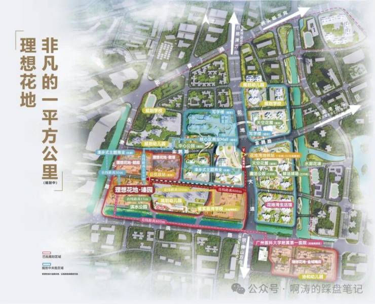 理想花地约18万㎡城市级购物中心、约7.5万方社区及街区商业、约2.5万方精品商业中心(规划中)