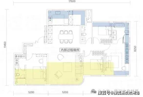 143㎡,首开压轴王炸产品。整体面宽17.5米,三环内足以自傲!客厅开间5.2米,作为首开压轴产品,只算够看,但实话说差点意思。