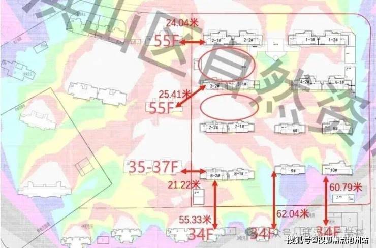 再来说一点大家很容易忽略的问题,那就是日照。在深入研究这个项目之前哥并意识到保利星奕会存在日照问题,可当哥打开规划局公示的日照分析图时傻眼了2、3栋南向竟然出现大片的白色,这个代表在大寒日(全年日照时间最短)这两栋楼一层日照时间不足1小时。即便中高楼层,日照时间也肯定不如其他楼栋。