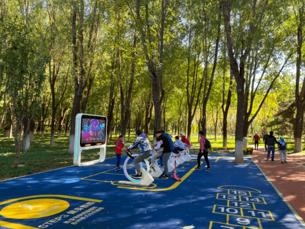 林木茂盛,秋花盛开,沿河走走相当惬意。大运河森林公园正紧锣密鼓筹建国家5A级旅游景区,许多新建的文体设施吸引了很多游客。在骑行游戏区,可以通过模拟骑行的碳中和小游戏,了解绿色出行的减排知识。