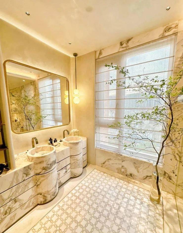 - **双主卧套房**:南向双套间均配置独立衣帽间及卫浴,主卫采用双台盆+独立浴缸设计,选用汉斯格雅智能卫浴系统。