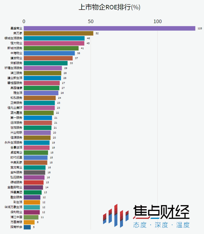 保利物业,彩生活作为规模头部的物企ROE相对较低,分别为12%和12.2%,名列第37和35位。
