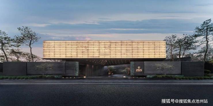 站在绿城义乌·凤栖逸庐的大门下,设计没有想象中的浮夸,甚至可以说很低调。一道约30米长的白色石材门廊,线条简洁利落,细看才会发现是“浮玉山居图”的当代表达。