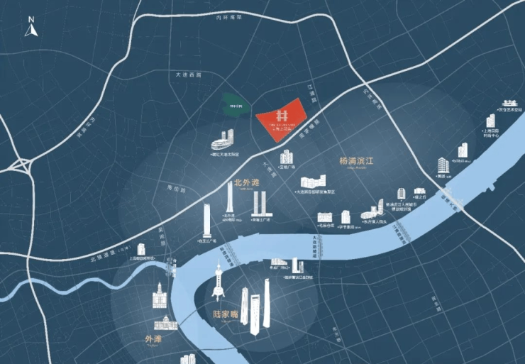 项目位于上海杨浦区鞍山新村商圈,属上海内环内,近东外滩、北外滩,靠近大连路总部研发聚集区,一桥九隧迅速通达陆家嘴及外滩。北外滩、东外滩、大连路、瑞虹新城四大商圈环绕,毗邻字节跳动、美团、B站3大厂,未来发展潜力无限。
