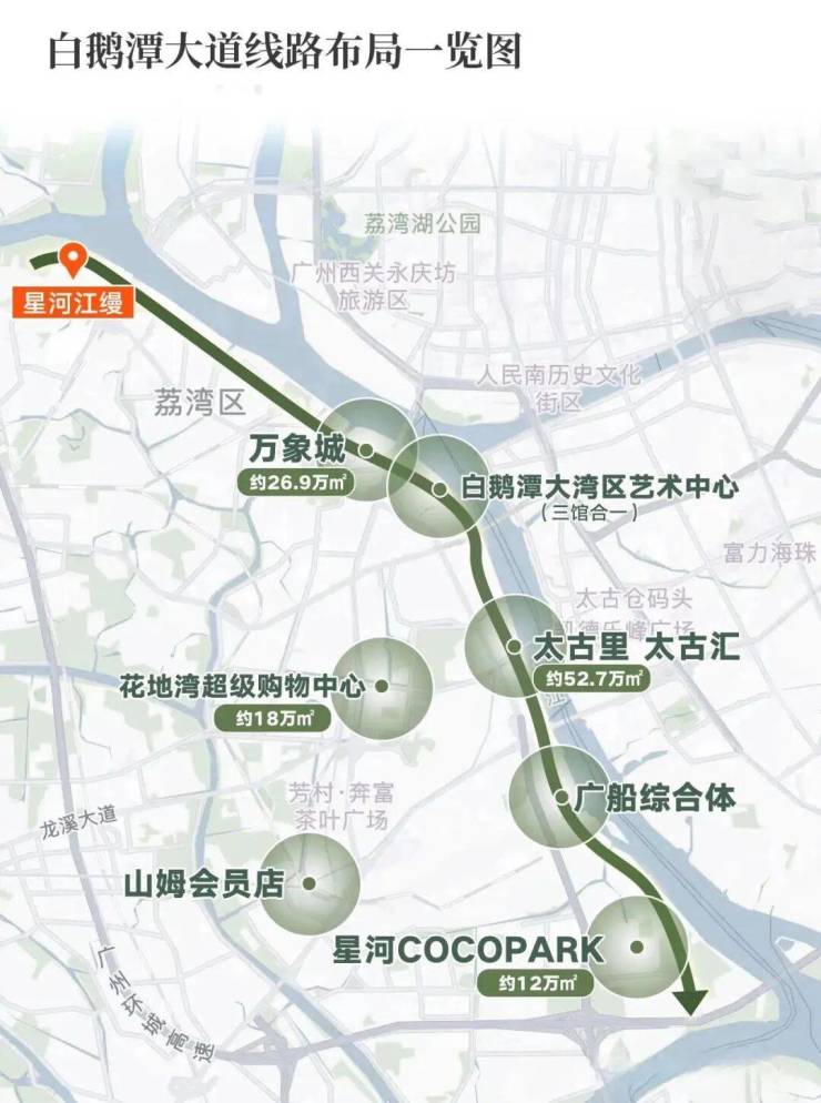 ——星河江缦地处广州西冀核心白鹅潭CBD,根据最新广州“十四五”规划,整体规划范围达到 36 平方公里,面积约为6倍珠江新城的规模,总投资超1500亿,其中包括1个核心区、11个功能组团,打造以总部经济、医药健康产业和新兴服务业为三大重点产业。整体的连片旧改,让荔湾的发展坐上了高速列车,也是目前整个广州所有区域里真正做到了价值的洼地,未来成长性是也是最具潜力的。