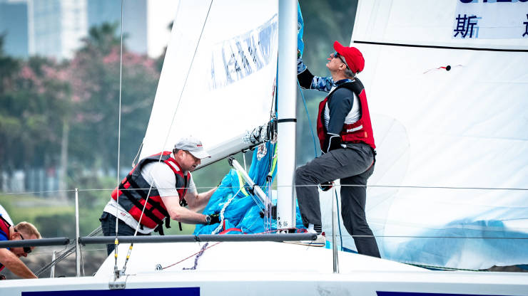 今天,暂时位居大帆船珐伊28R赛船组榜首的是深圳海狼队,其船长颜宇业在赛后接受采访时表示:“今天总体表现可以打9分,前面几轮起航的时候进得太早,我们比较被动,后面改变战术就是掌握时间,发挥还是挺好的。到后面就一步一步去追赶。”