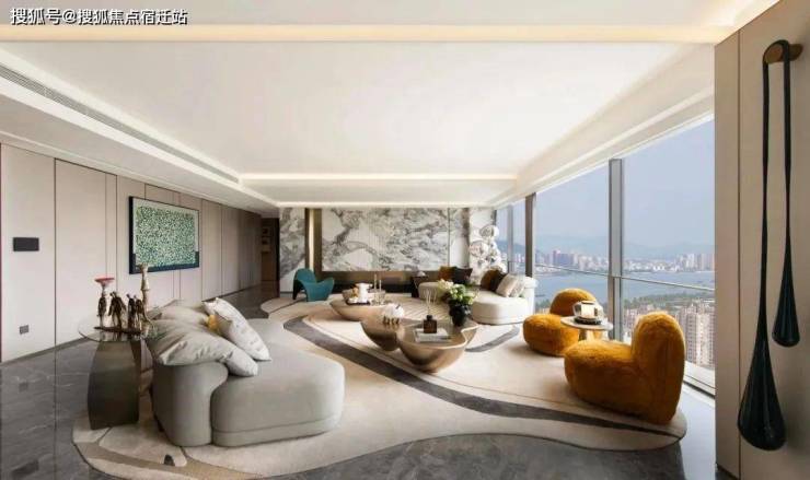 室内设计:汤臣一品软装设计团队(WSD世尊)与金永杰联袂,以水墨灰调、270°转角落地窗、LDK一体化空间,实现艺术与功能的平衡。