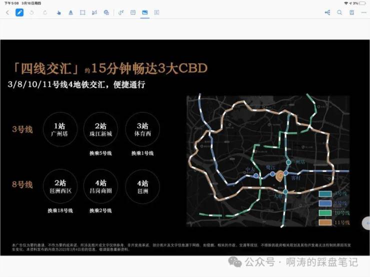 3号线 8号线 11号线,一站广州塔、二站珠江新城或琶洲 三站体育西 四站江南西商圈。