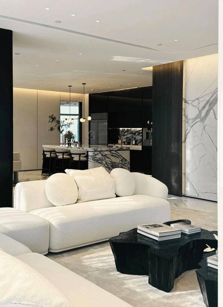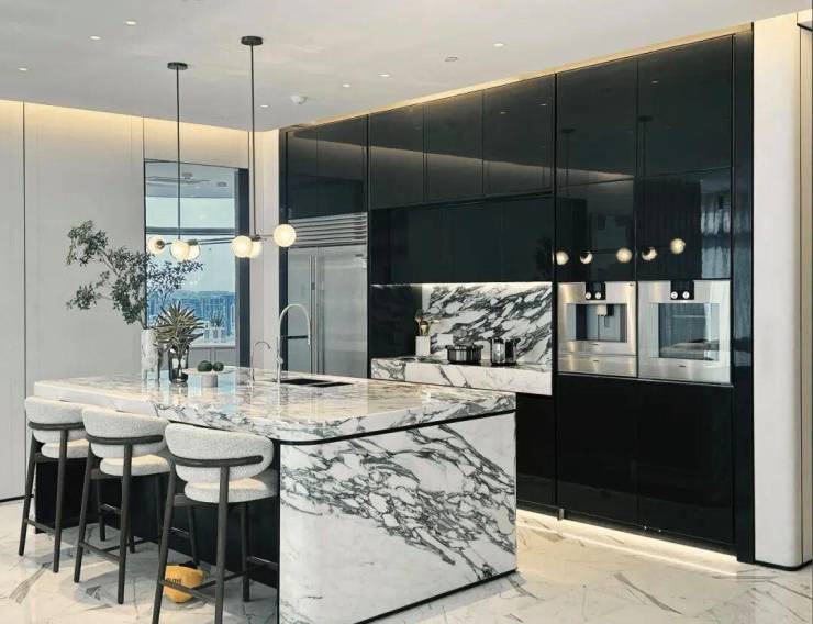 以国际顶豪为样本,由杭州宇策贸易有限公司打造的190套Scavolini Regola厨房系列,为样板空间缔造别具一格的餐娱社交中心。贯穿客餐厅的鱼肚白石材,与Scavolini的亮光烤漆门板结合,深浅搭配,光影交错,强调室内开阔而充足的开窗采光,为居者呈现了奢华之下的实用美学。