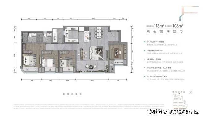③精装:高配四大件:新风、地暖、中央空调、洗碗机,严选大品牌:博洛尼、百朗、TOTO等一线品牌