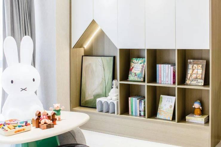儿童房承载了孩子的童年时期,这里没有复杂的装饰,同时留有足够的自由空间,给儿童房和孩子一起“成长”的余地。