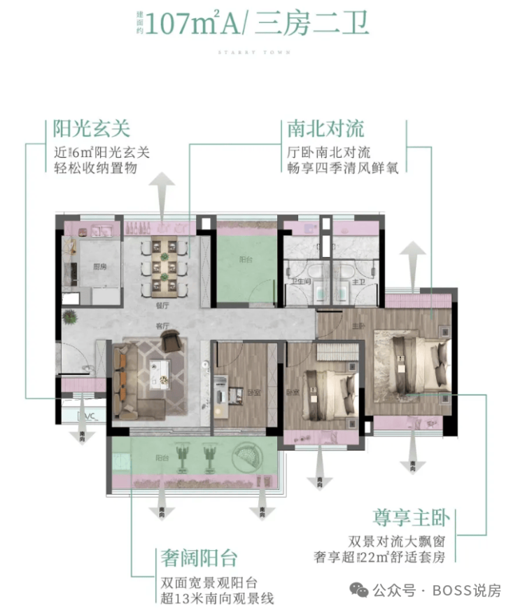 畅享双面宽观景阳台,飘窗拓宽功能空间