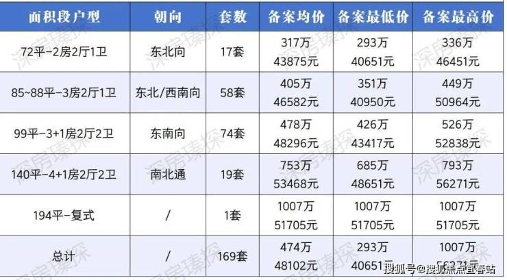 宝安石岩,言成云祥公馆于2024年11月14月取证入市,本次推出1栋C/D座,共169套房源,面积有72㎡的2房1卫,86-88㎡的3房1卫,99㎡的3+1房2卫,140㎡的4+1房2卫户型,备案均价4.81万/㎡,备案单价4.07-5.63万/㎡,总价在293-793万/套,计划在2026年9月底前带精装交房。