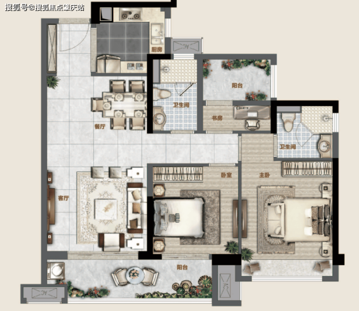 精致三房,灵活多变自由布局扩大家庭空间交流