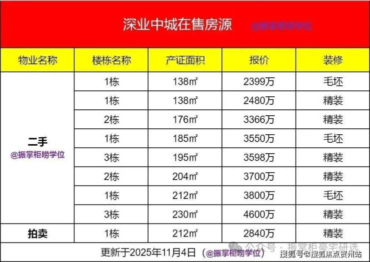 最后回到开头单价13.1万/㎡的深业中城212平2840万是拍卖房源,属于资产罚没,1栋低楼层,精装修,目前空置,可以看原房,交付可控,感兴趣可以预约。