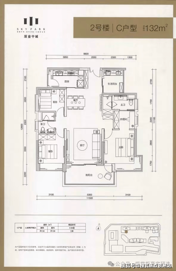 ·133㎡3房(C户型):跟1栋1单元/2单元的03户型一致,属于小区门槛户型,生活阳台可以做+1房,双龙报珠格局,客厅和两个房间(1主卧+1次卧)均为南向,安静看花园,采光、隐私性和景观面相较1栋03户型略逊色,价格上也有差异。