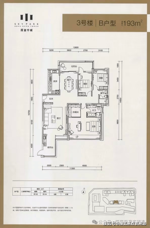 ·193㎡三房(1单元/2单元B户型):原始3房格局也能做正规四房,南北通透,2面采光,客厅阳台是竖向跟客厅垂直占客厅面宽的一半多一点,客厅阳台会有对视,位于小区正中间位置。