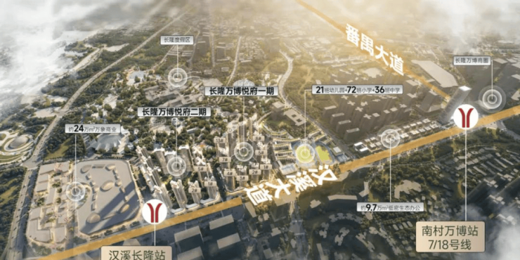 背倚全球第六大主题乐园集团、国家 5A 级景区约 150 万 m² 长隆旅游综合商圈,有长隆约 5km 森林天然氧吧,独创规划 “绿心廊桥”,连通 “公园 + 居住”,还将围绕长隆绿心打造 3 公里长环园区 “林荫大道”,分段赋予活力街、漫步道、乐园径等不同主题,提供全龄友好的慢行休憩空间 。