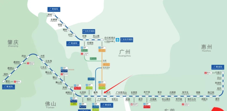 也是广东城际的换乘站,目前已经开通,下楼就能畅玩肇庆,佛山,广州,东莞,惠州五个城市;