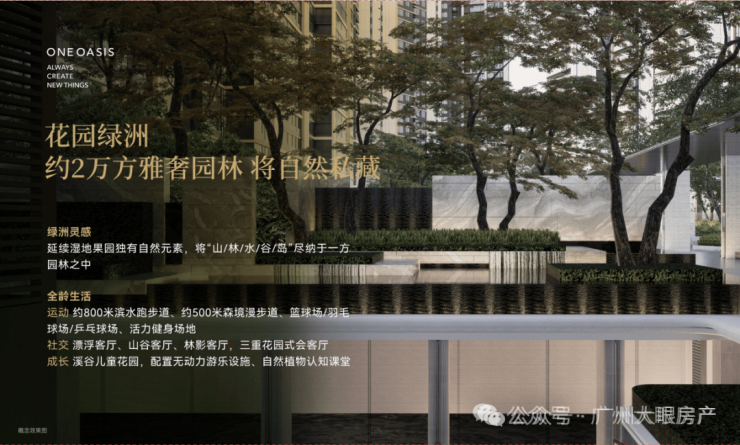 整个滨水园林包括了5大功能区,主入口的林溪港湾、拾阶云台、漂浮会客庭院、亲子儿童乐园(即溪谷花园)、配置羽毛球和篮球场的悦动之港,真正做到了一步即一景。