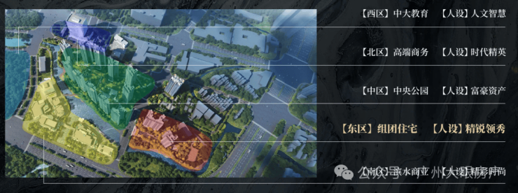 东区为住宅组团,有滨水园林,近地铁和商业,有精英要的奢享及高效;