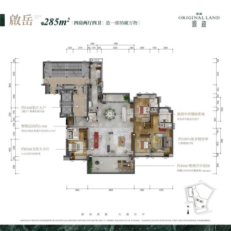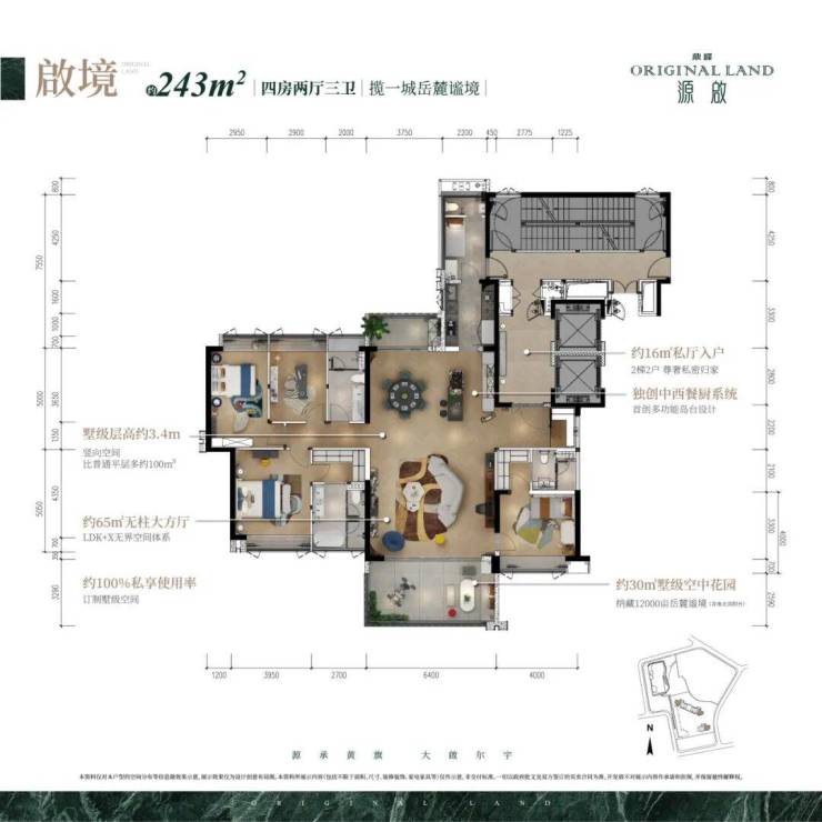 「鼎峰源啟」,整个小区总建面约10万㎡,规划有150套,243-285㎡私定空中墅产品,纯大平层项目。