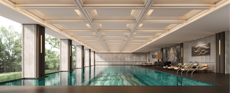 ①精英酒店式会所:层高约6米,配置私宴厅、多功能健身房、室内恒温泳池。