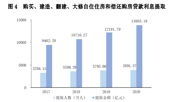 2020年,支持3891.57万人提取住房公积金用于购买、 建造、翻建、大修自住住房和偿还购房贷款利息,共计13803.19亿元,分别占当年提取人数、提取金额的63.97%、74.41%。