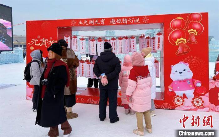 游客在哈尔滨冰雪大世界猜灯谜 冰雪大世界供图