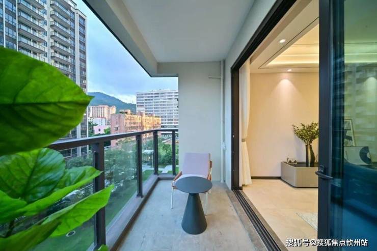 双阳台设计,一边用于生活收纳,一边用于观景。凭栏眺望,南湾的繁华景象、绵延的山脉尽收眼底。