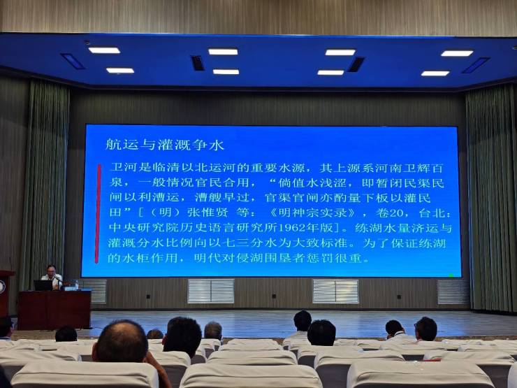 聊城大学程兴国、刘名名、中国海洋大学赵林、中国中车-八维通科技有限公司廖井霞、中交水运规划研究院姜兴良、华北水利水电大学饶明奇、清华大学同衡规划院牛成等专家学者分别从文脉传承、水工技术、智慧运河、规划建设、历史管理等角度作了精彩报告,展示了运河研究的多维视野与前沿进展。