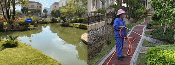 图:世茂服务工作人员使用雨水收集池的水浇灌社区绿化