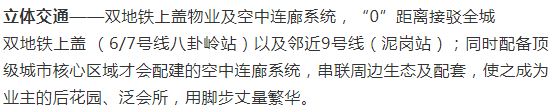 通过空中连廊系统,500步直达32万㎡的体育中心(改造中),改造后的体育中心将成为世界一流体育中心,并成为业主的社区配套。