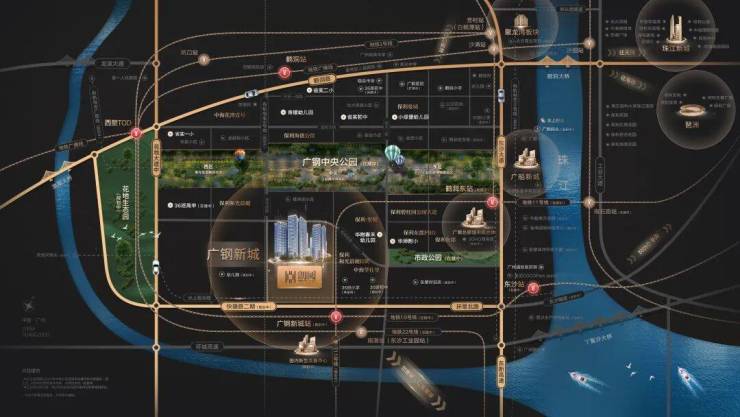 项目坐落于荔湾区广钢新城创业西路,处于广钢新城南区核心位置,紧邻白鹅潭商务区
