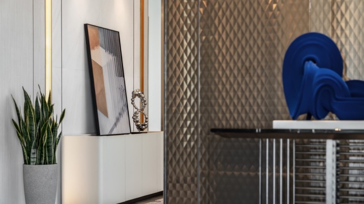 高品质、商务感的园区环境与形象,是资产方以及入驻企业实力与气质的传达。金地威新国际中心首层9.7米挑高精装大堂、2.9米净高的无柱式空间,颜值与功能并重。此外,中空双银low-e玻璃幕墙、智能新风系统等硬件配置,凸显出楼宇企业的格调与品质,彰显企业气场,无形中传播提升企业“身价”。