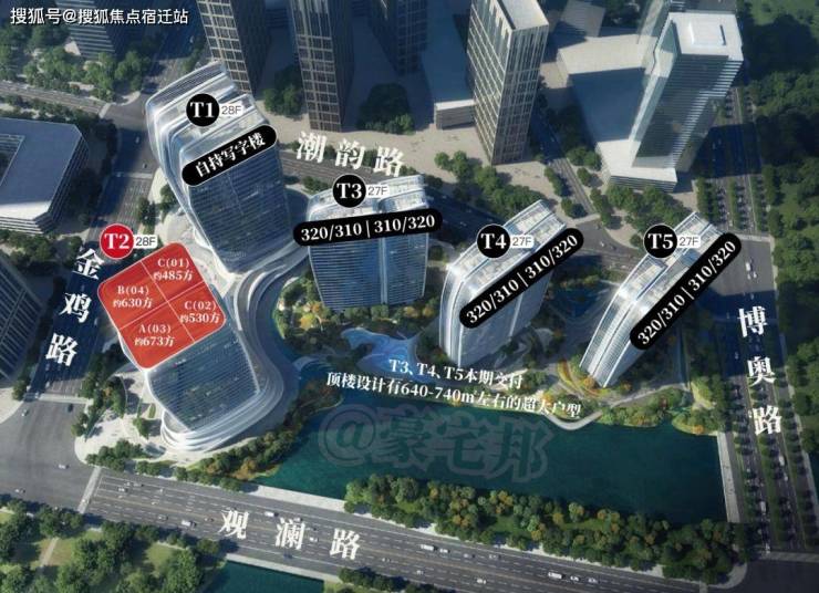 项目占地4.4万方,总建筑面积约33万方,其中地上建筑面积22万方,项目地上最高28层,地下3层,共规划5幢塔楼,由写字楼、大平层公馆和商业三大业态组成。