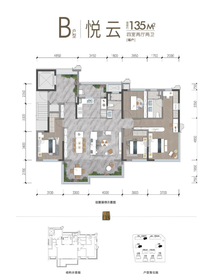 建面约135/139㎡ 新规可变五房|实际使用空间约155/165㎡