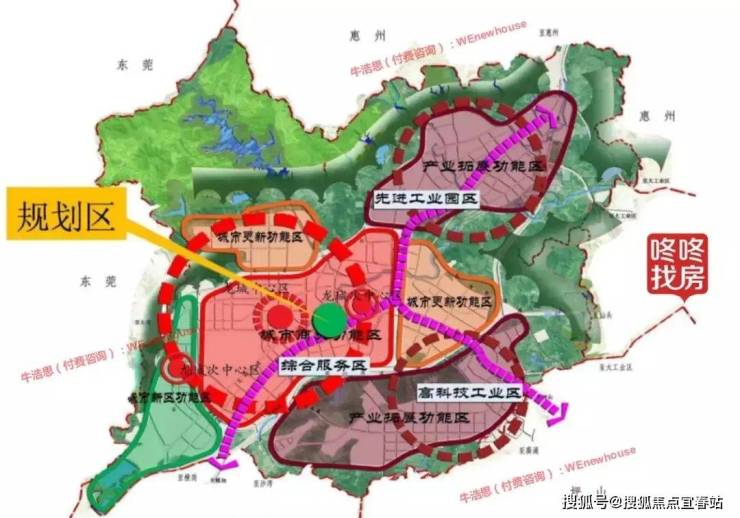 该片区整体定位为城市商务功能区,属于综合服务区,是以行政办公、生活居住、商务为主的融合空间。项目所在的区域为龙城次中心区。