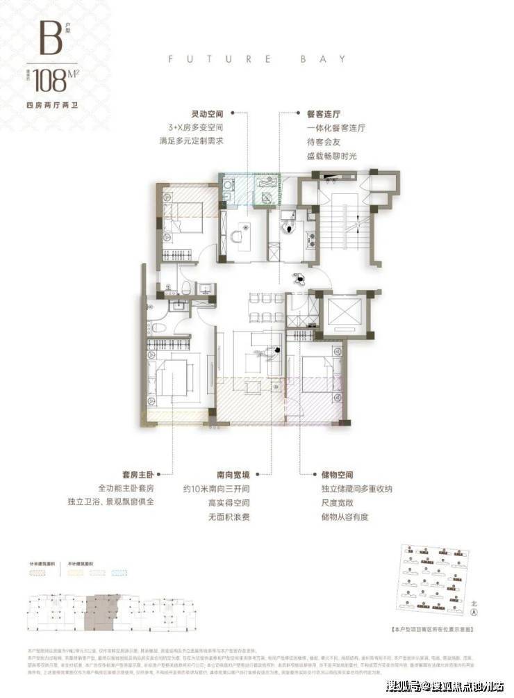 得益于 新规政策+一梯2户的设计,云之城108方首置的面积,拥有改善的超级功能, 做到了4房,其中3个卧室的面积均在10方以上,进门还有储物间,居住、收纳、休闲等功能都强大。