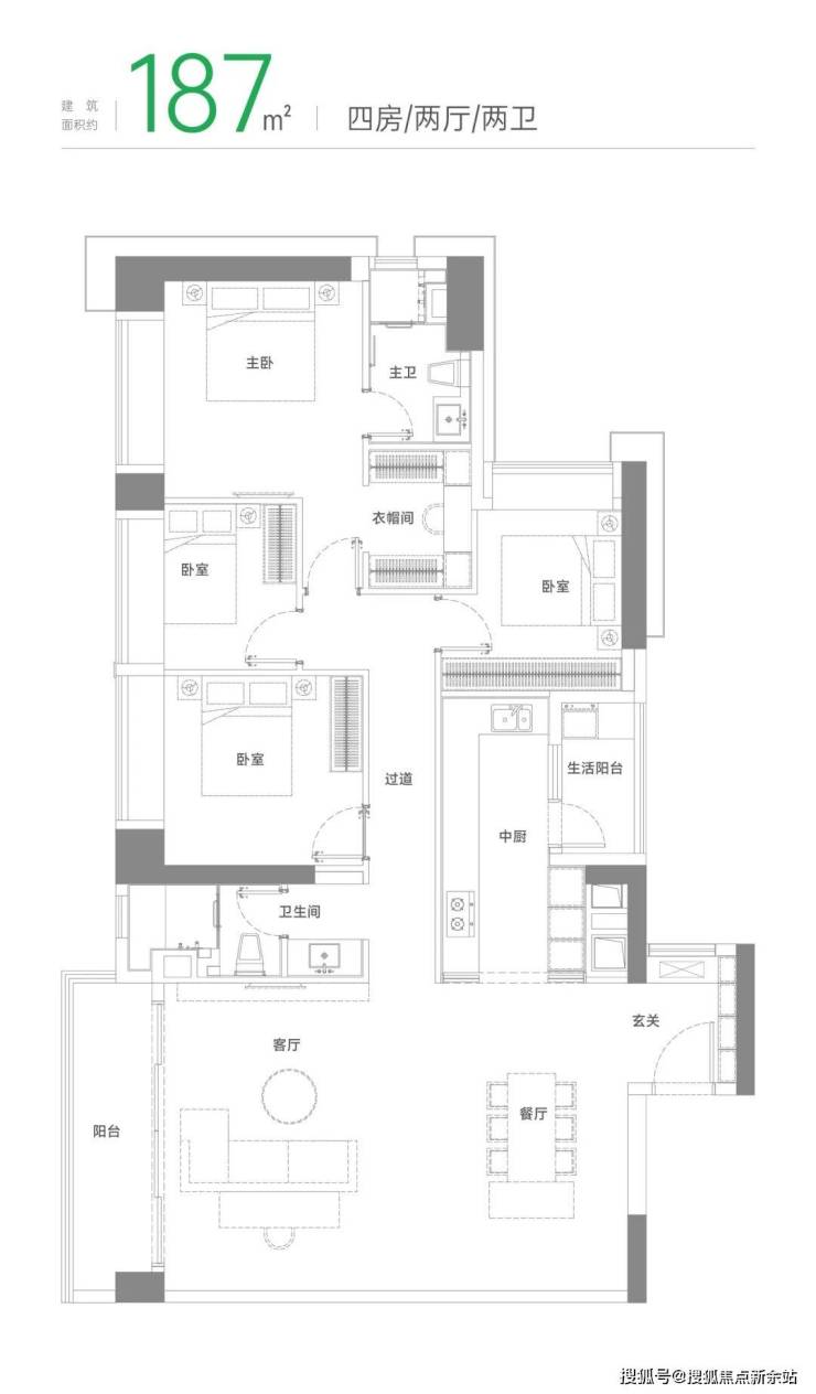 3、建筑面积约187㎡户型