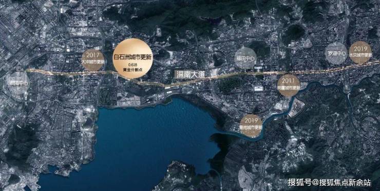 在伦敦、纽约这样的超级城市,其城市主轴的黄金分割点上均屹立着城市超级影响力的项目,如伦敦金丝雀码头、纽约中央公园,而深圳的发展主轴深南大道自东向西,绿景白石洲正处于黄金分割点之上。项目位处城市GDP第一的南山区,深南大道与大沙河科创走廊十字交汇点,代言深圳发展高度。