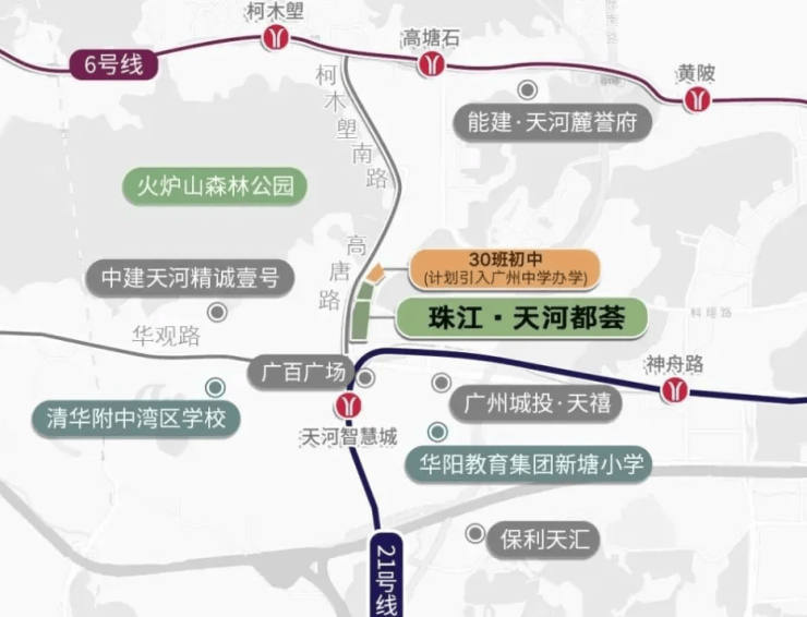 地铁通勤到珠江新城都需要21号线转5号线,适合想要半小时珠城通勤的小伙伴。