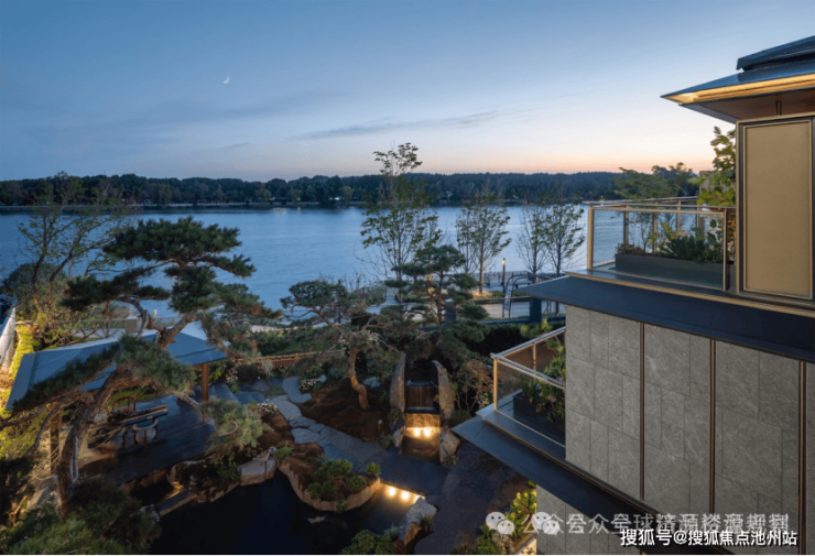 临水处,低密揽湖合院横向披檐以留白之艺勾勒从容轮廓,首层360°洄游厅堂,以大幅通透的窗地比令建筑立面剔透如艺术。一层一居的奢阔尺度,奢享湖岛巨幕生活,让家如生长于湖畔的绿岛,营造流动的“自然光剧场”。