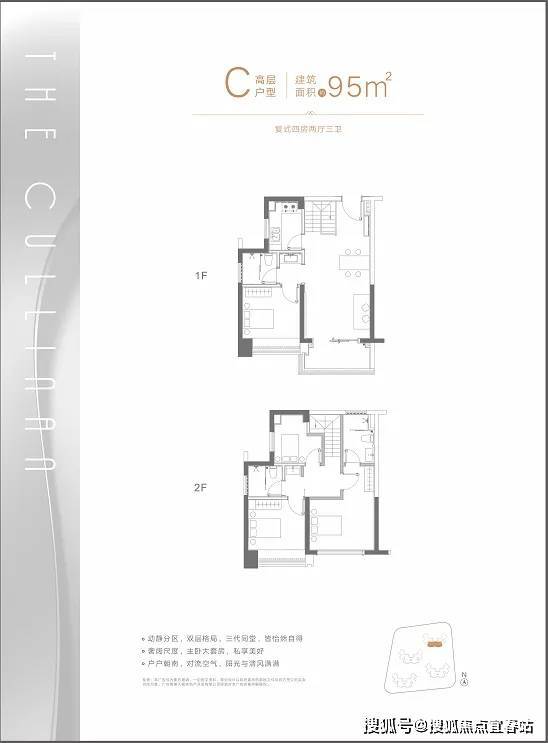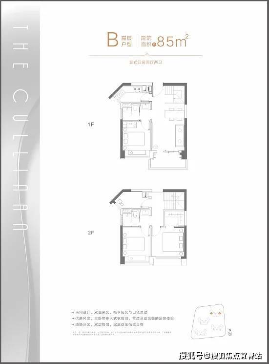 总建筑面积约10.6万㎡,设有4栋高层复式洋房,建面为85-120㎡,采用错式排布,全南向设计,通风采光俱佳,带精装交楼。
