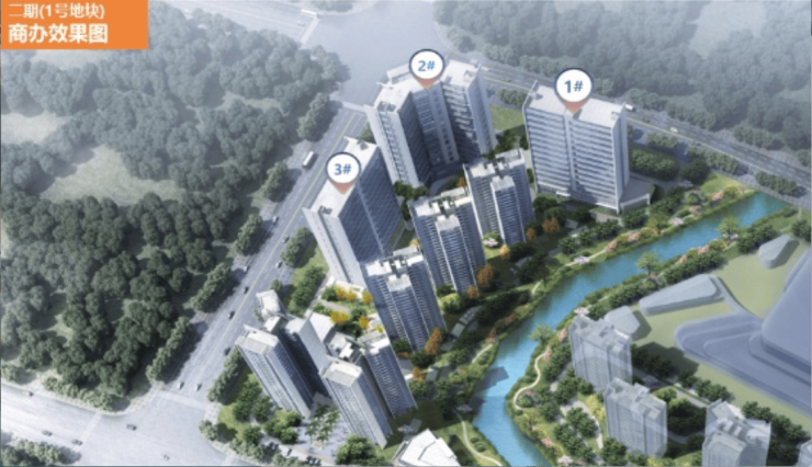 ▶二期(1号地块)1-3号楼整售商办,建筑面积约1.3-1.6万㎡