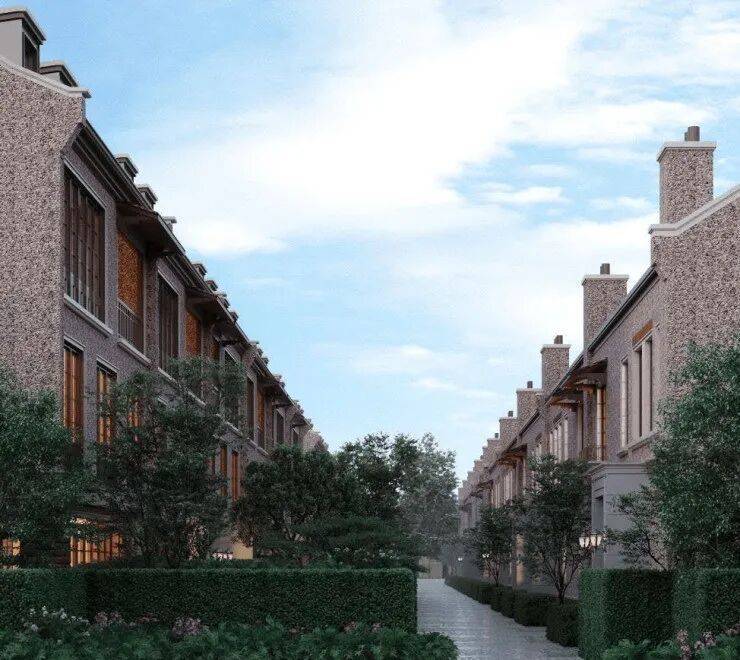 项目传承鱼骨行列式街巷肌理,打造一轴五巷海派花园墅境,一条南北主弄串联四条支弄,步移景异。