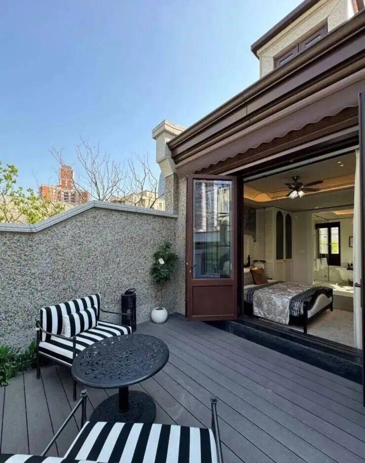二楼还带大露台,花木绿意和四季变换近在眼前,提供更多情趣生活场景。