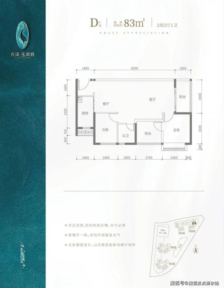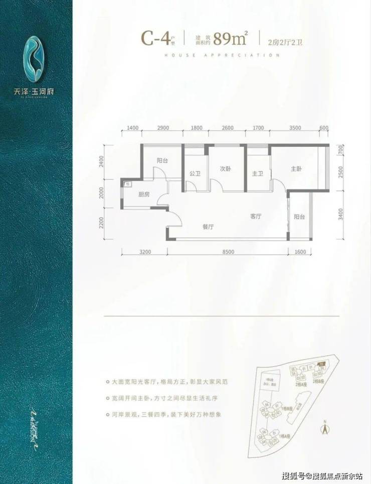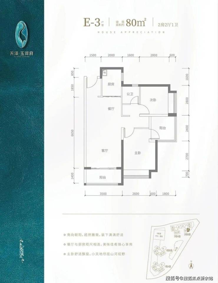 V型塔楼布局,南向阳光户型,约80%高实用率,双阳台,光明罕有绝版户型。建面约80-143㎡2-4房河岸美宅,赠送高标准绿建简装,舒适2T5/3T6,向往的生活在这里触手可及。