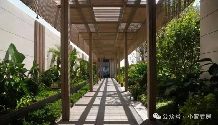 而项目的空中园林,功能之完善、颜值之高,也超出不少豪宅社区的大园林。整个园林是参考东南亚奢华酒店风格打造,从目前实景呈现的部分,已经能畅想未来业主在这里躺平、小孩在这里嬉戏时,能有的惬意。各楼栋之间,也都有风雨连廊相连,能帮业主每趟归家路挡雨、遮阳。